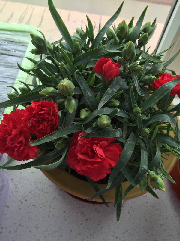 刚买的康乃馨叶子上白白得东西,是灰尘还是病菌,求大神指点!