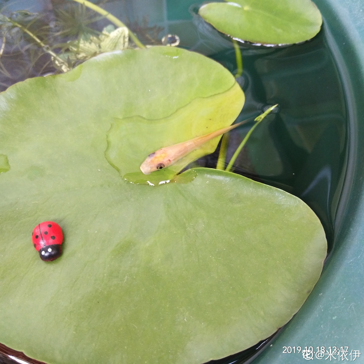 最初的最初,买小鱼是为了碗莲盆子里不要长虫子,但是买回来以后发现很难不在乎它们。每次休息我都能坐在阳台上盯着它们看一个下午。时间仿佛都是静止的。小鼠游得非常快,每次想要捕捞它起来总是要费一番功夫。小鼠总是喜欢贴在壁上小嘴不停地动。在小龟还没来我家之前家里的小捣蛋最爱的就是小鱼们了。慢慢的,有一只小鼠特别喜欢往水面跑,不知道是不是已经感觉不适了?最后的最后,所有的小鼠在我不留意间全都死了。只剩下这一点点痕迹。