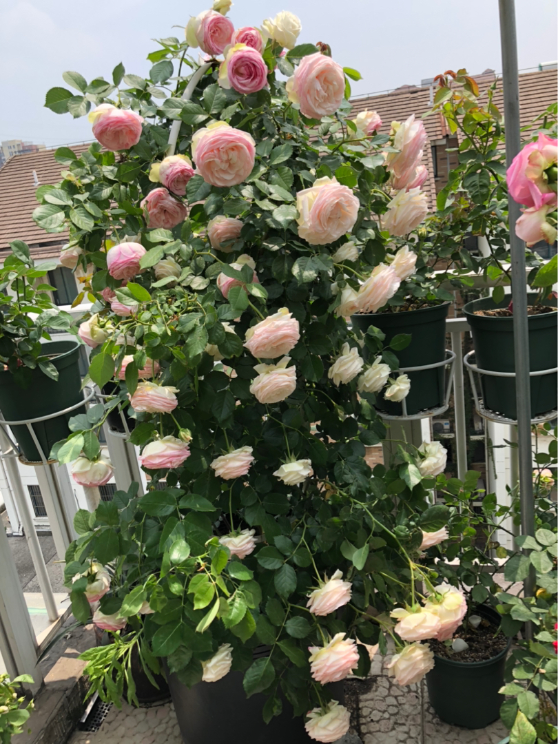 五年前无意之中一脚踏进了月季坑从此开启了我的月季花坑无期限漫游。五年来从养一棵挂一棵的小白渐渐变成养一棵活一棵再到养一棵壮一棵;从一棵到八十棵,不经意间塞满了我的小露台;藤本,灌木,微月,切花,小露台上像是一个小树林。每一颗都精心尽心养护月季就像是我永远不舍得出嫁亲闺女,一天看不见它们都会心有牵挂。每一朵花开我会喜悦每一朵花谢我会惋惜,月季呀是我永远戒不掉的“毒”!