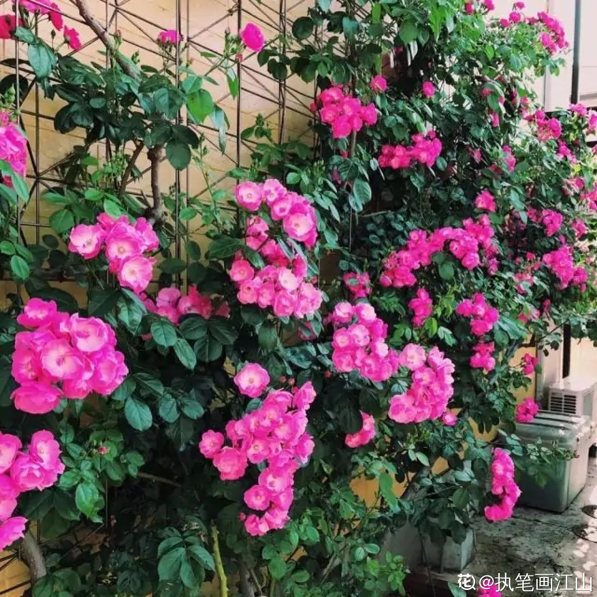 介绍一种会爬墙的藤本花卉——天使安吉拉,是很多花友做花墙、花拱门的首选目标,不仅花多花美,种植容易,花期也很长。天使安吉拉 天使安吉拉,1984年育成于德国的藤本月季花,迄今风靡全球,我国南方北方均有栽培,多做街道园林绿化美化或家庭庭院栽植,其花朵成团成簇,一捧一捧开放,是园艺造景的绝佳材料。 花量超多 天使安吉拉的花朵,半重瓣,花瓣数26-40片,直径4公分,粉红色,单花并不漂亮,但是贵在花量超级多,成群簇拥开放,一开花便成花海,转眼就成了一片粉色的花瀑倾泻而下,美丽而壮观。 盆栽也可以 天使安吉拉属于大型藤本,抗病性极强,性甚强健,皮实坚挺,既耐寒,也耐热,在我国南方广东、北方华北地区都可以露天养殖,长势迅猛,两年苗就能爬满一个拱门,天生是个绿化美化好手。当然,盆栽也是可以的,这是很多大型藤本不具备的优点。 花期超长 天使安吉拉属于丰花勤花月季,在长江以南,一年四季可开花(北方冬季落叶不开花),单花花期能维持20天左右,花朵带有怡人的水果香,在庭院、阳台上种植,整个屋子都能闻到花香,一次种植,年年赏花,性价比极高,值得拥有。