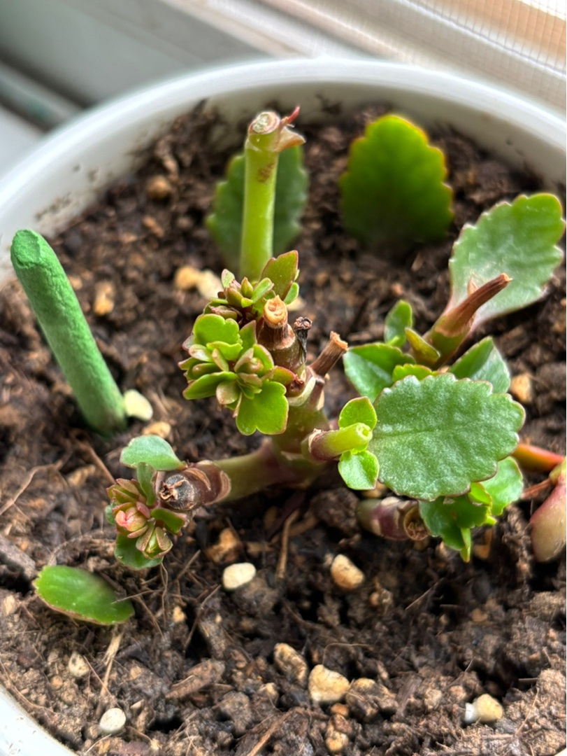 我是一名养花。新手大概是在一个多月前 我在回家的路上买了一盆开过一季的长寿花,店主帮我把开败的花剪掉了,告诉我说还可以开一季。带回家后发现叶子状态不对,很多叶子烂掉了,发现有三只大青虫和很多卵。我把虫子全部处理了把有卵的也剪掉了,重新换了土,发现很多根也都烂掉了,但也有新的根。后面又试着喷了一些柳条水和插了一根营养棒。整个过程陆陆续续长了一些新的叶子,但是最开始留着的几片叶子始终没有长得特别大。请问我现在要怎么做?我这现在基本上没有什么太阳,前三张图是小草现在的样子