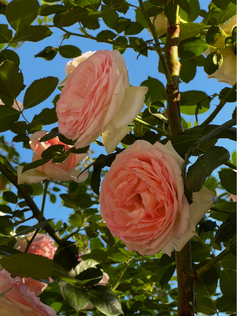 把龙沙宝石种在了南墙外侧,两年就已经超过了墙的高度,这是去年开放的情景。今年梳理了一下,幅面宽度达到了5米,期望初夏的盛放。